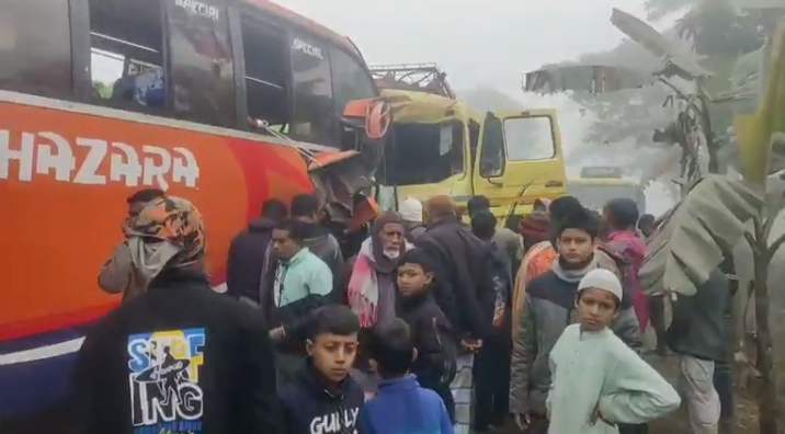 রাজশাহীর পুঠিয়ায় বাস-ট্রাকের মুখোমুখি সংঘর্ষে আহত ১৬