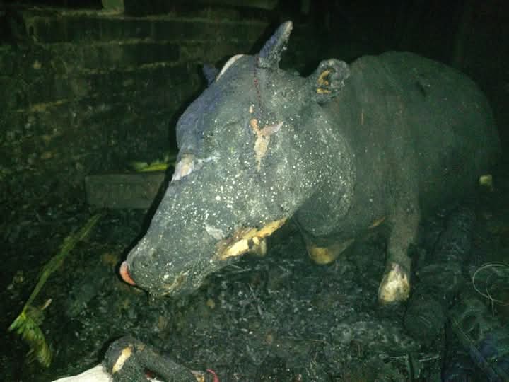 কুষ্টিয়া বৈদ্যুতিক শর্ট সার্কিটের আগুনে পুড়ে ছাই গবাদি পশু