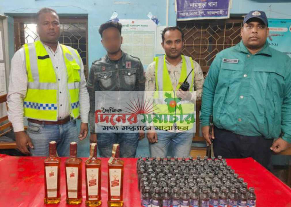 আরএমপি’র বেলপুকুর থানার অভিযানে বিদেশি মদ ও ১০৮ বোতল ফেন্সিডিলসহ গ্রেপ্তার ১