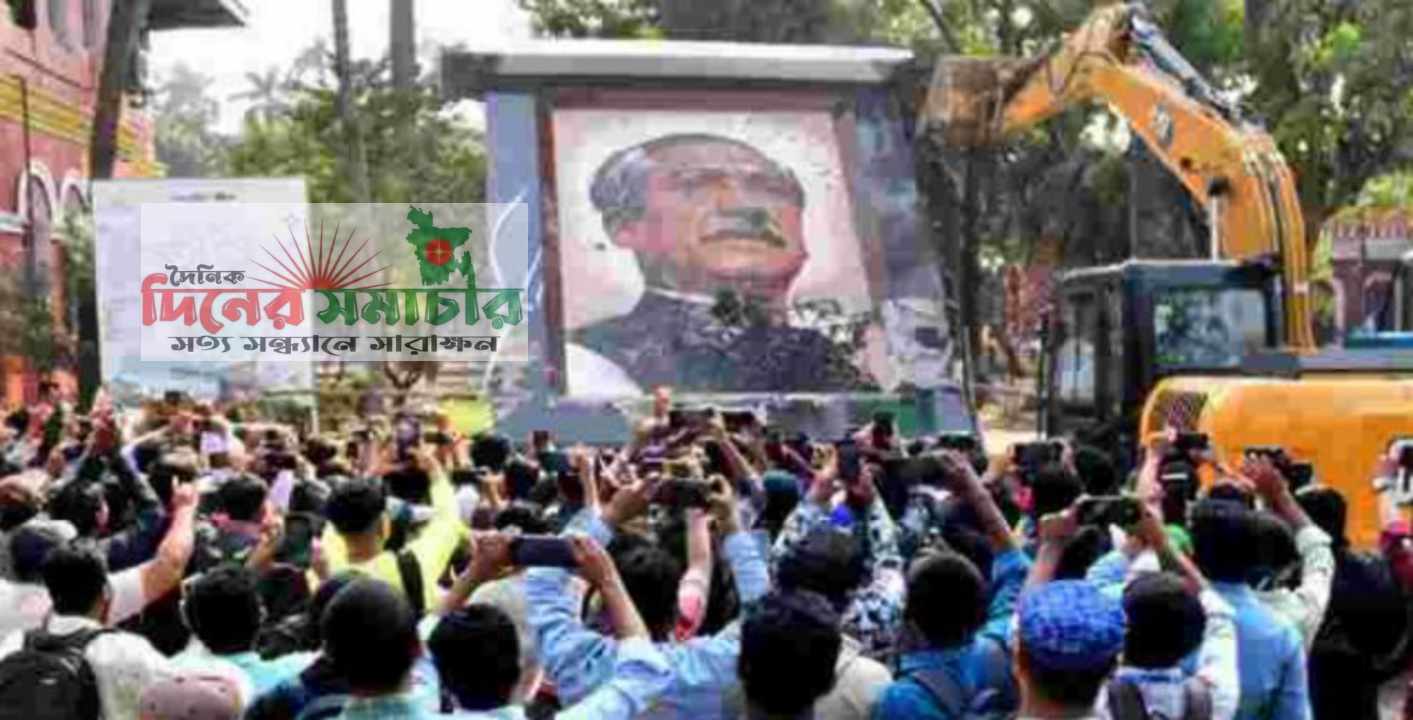 রাজশাহী কলেজে বঙ্গবন্ধুর ম্যুরাল বুলডোজার দিয়ে ভেঙে গুঁড়িয়ে দিলো ছাত্র-জনতা