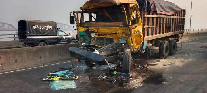 কুষ্টিয়ায় লালন শাহ সেতুতে দাঁড়িয়ে থাকা ট্রাককে পেছন থেকে আরেক ট্রাকের ধাক্কা, নিহত -১