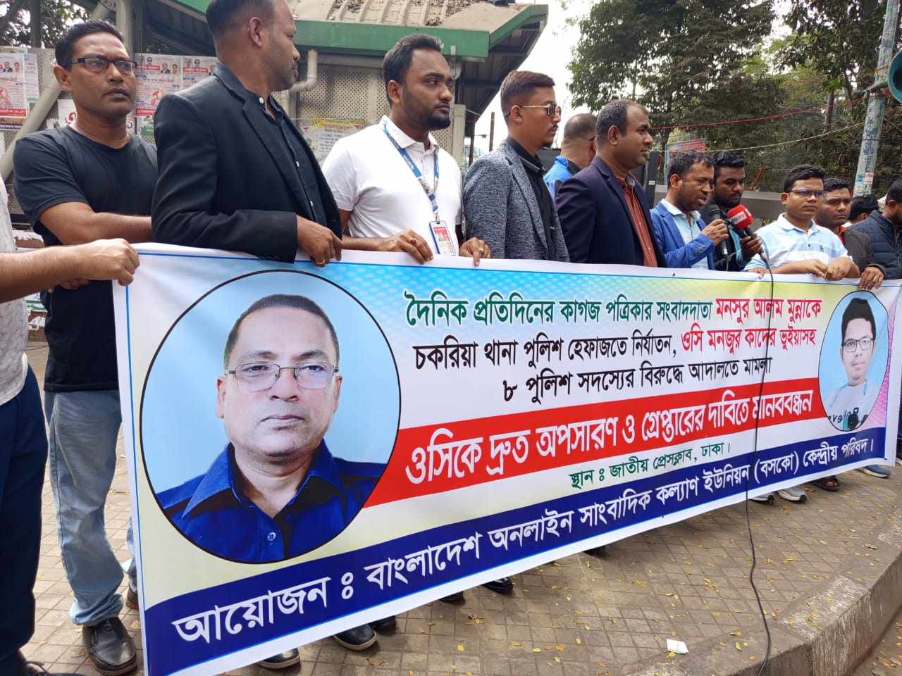 সকাল ১০ টা থেকে দুই ঘন্টার মানববন্ধনে সাংবাদিক নেতারা উপস্থিত থেকে তার বিরুদ্ধে সোচ্চার বক্তব্য দেন। পাশাপাশি অনতিবিলম্বে ওসিকে প্রত্যাহার ও মামলার তদন্ত প্রতিবেদনের উপর নির্ভর করে গ্রেফতারের দাবি জানিয়েছেন।