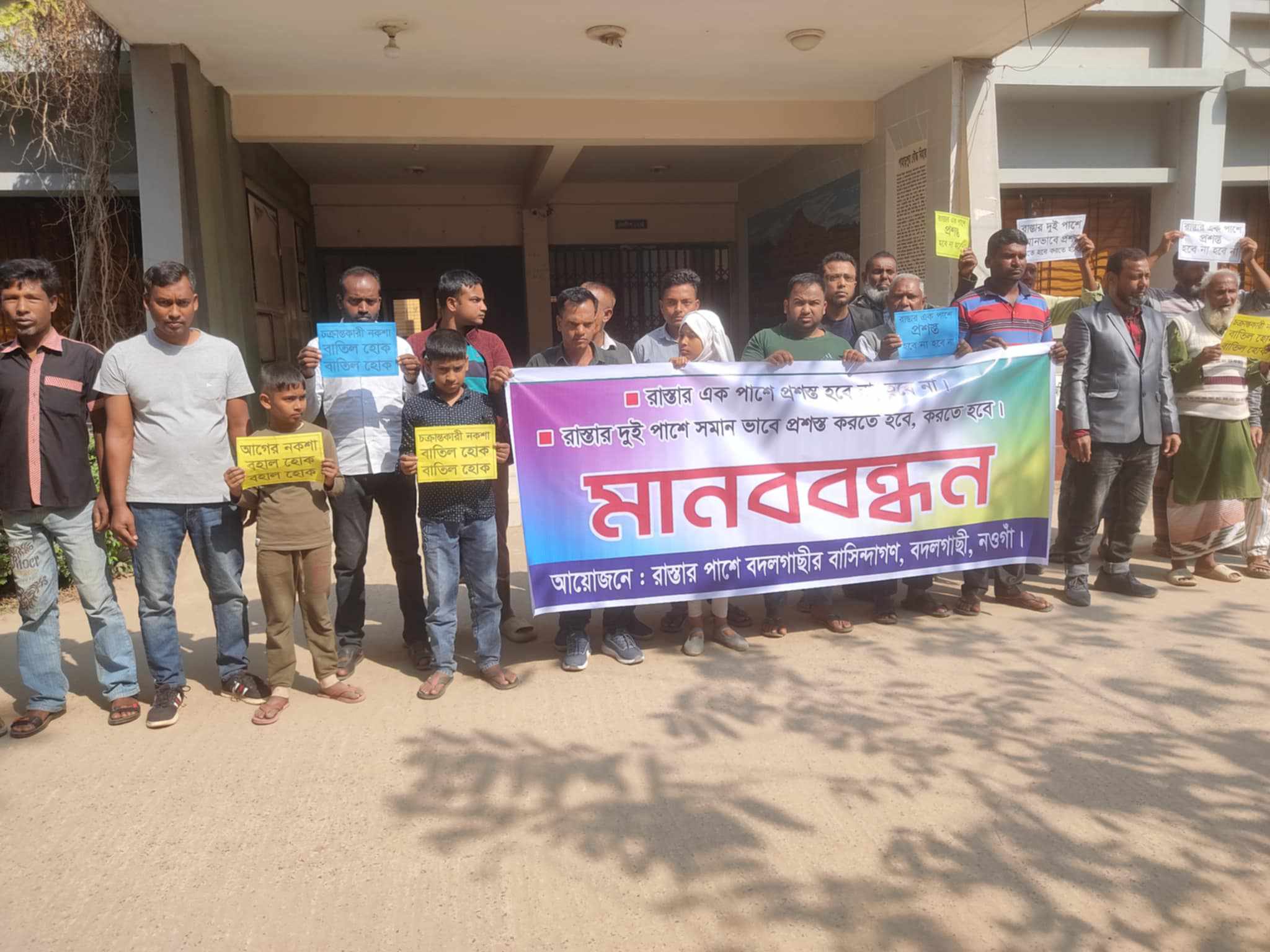 রাস্তা উন্নয়নের বিপক্ষে আমরা নয়।আমরাও চাই রাস্তার উন্নয়ন হোক, তথা এলাকার উন্নয়ন আমাদের কাম্য। আমরা উন্নয়নের অংশীদার হতে চাই। কিন্তু বৈষম্য কেন? একদিকের জনগন সহায় সম্বল সব হারাবে, অন্য দিকে অধিগ্রহণের সুযোগ থাকা সত্বেও  কেন এই বৈষম্য? আমাদের সমঅধিকার থেকে বঞ্চিত কেন  করা হচ্ছে? আমরা এটা কখনোই হতে দিবনা।প্রয়োজনে আমরা আবারও কঠোর কর্মসূচি পালন করবো। এভাবেই বক্তব্য রাখছিলেন মানববন্ধনে উপস্থিত ক্ষতি গ্রস্ত জনগণ। পরিশেষে উপজেলা নির্বাহী অফিসার বরাবর স্মারক লিপি প্রদান করেন তারা।
