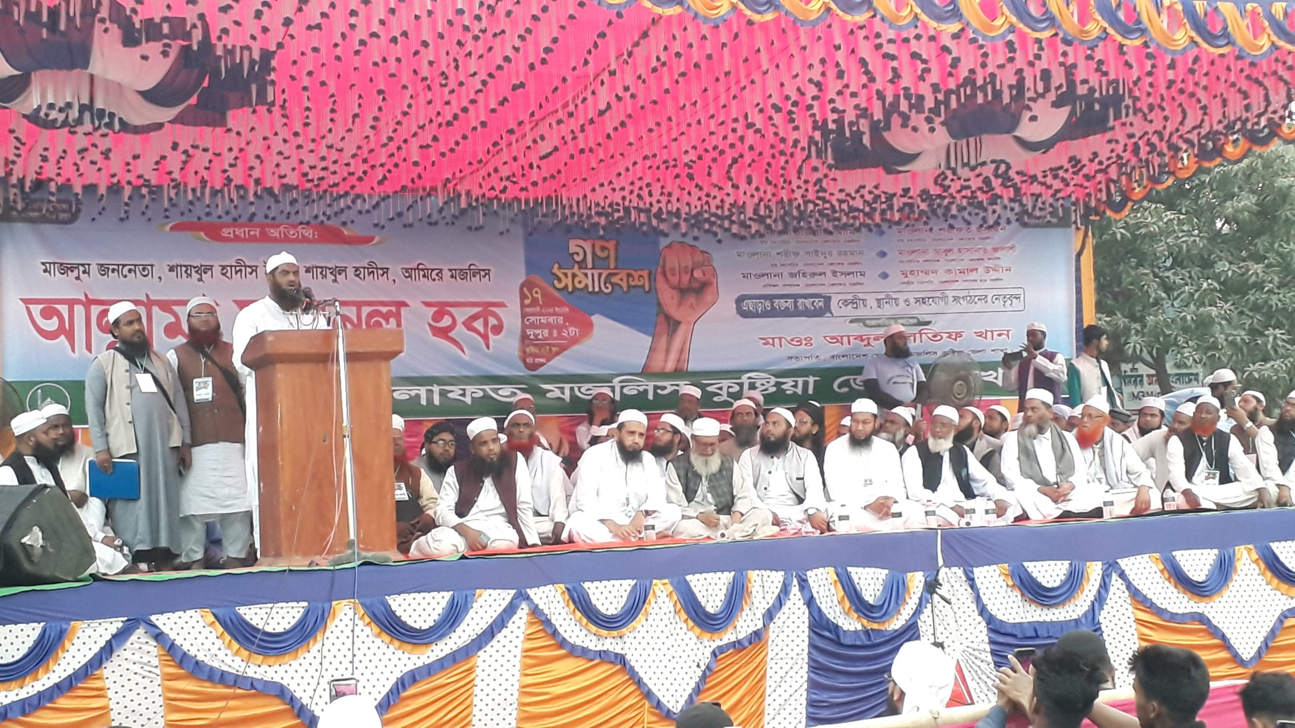 এসময় গণ সমাবেশে মাওলানা আব্দুল লতিফ খানের সভাপতিত্বে উপস্থিত ছিলেন বাংলাদেশ খেলাফত মজলিসের কেন্দ্রীয় নেতৃবৃন্দ সহ কুষ্টিয়া জেলা ও উপজেলা পর্যায়ের নেতাকর্মীরা।