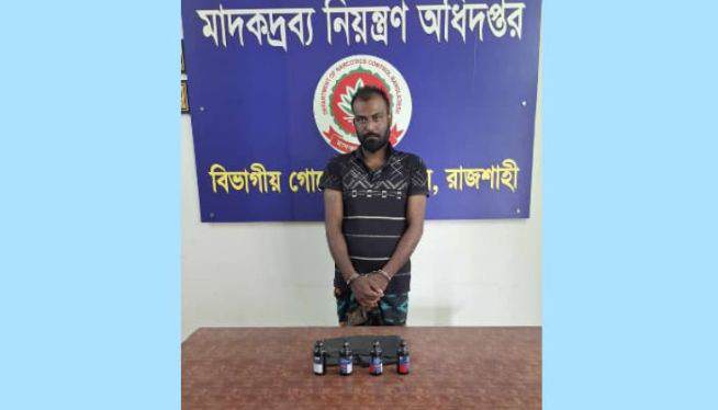 রাজশাহীতে ৪ বোতল ফেনসিডিলসহ মাদক ব্যবসায়ী আটক