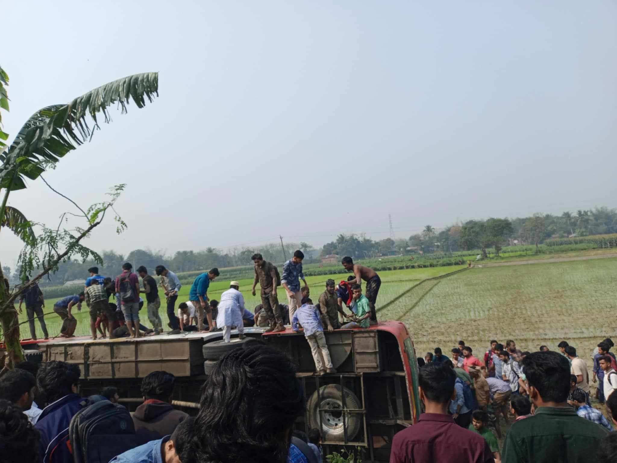 ইবি’র শিক্ষার্থীবাহী বাস উল্টে ধানখেতে