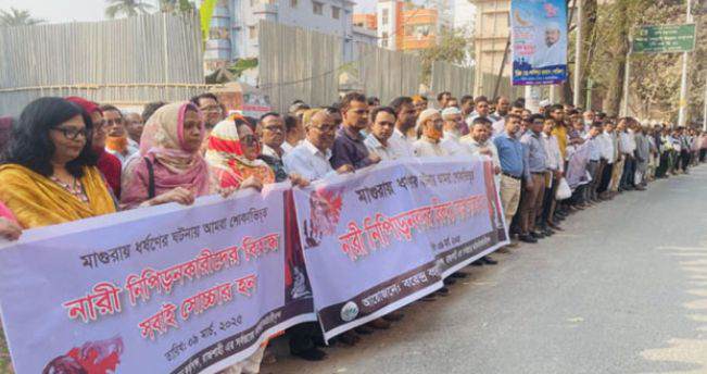 দেশের বিভিন্ন স্থানে ধর্ষণের প্রতিবাদে এবং ধর্ষকের সর্বোচ্চ শাস্তির দাবিতে রাজশাহীতে মানববন্ধন অনুষ্ঠিত হয়েছে। রোববার (০৯ মার্চ) বিকালে বরেন্দ্র বহুমুখী উন্নয়ন কর্তৃপক্ষের (বিএমডিএ) আয়োজনে অফিসের সামনে এ কর্মসূচি পালিত হয়।