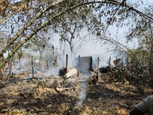 বিকেলে সরেজমিন গিয়ে দেখা যায়, দাঁড়িয়ে আছে শুধু খুঁটি। ঘরের চাল, আসবাবপত্রসহ সবকিছু পুড়ে ছাই। উৎসুক জনতা ও স্বজনরা এক নজর দেখতে ভিড় করেছেন। বাতাসে পোড়া গন্ধঁ। স্বজনদের আহাজারি।