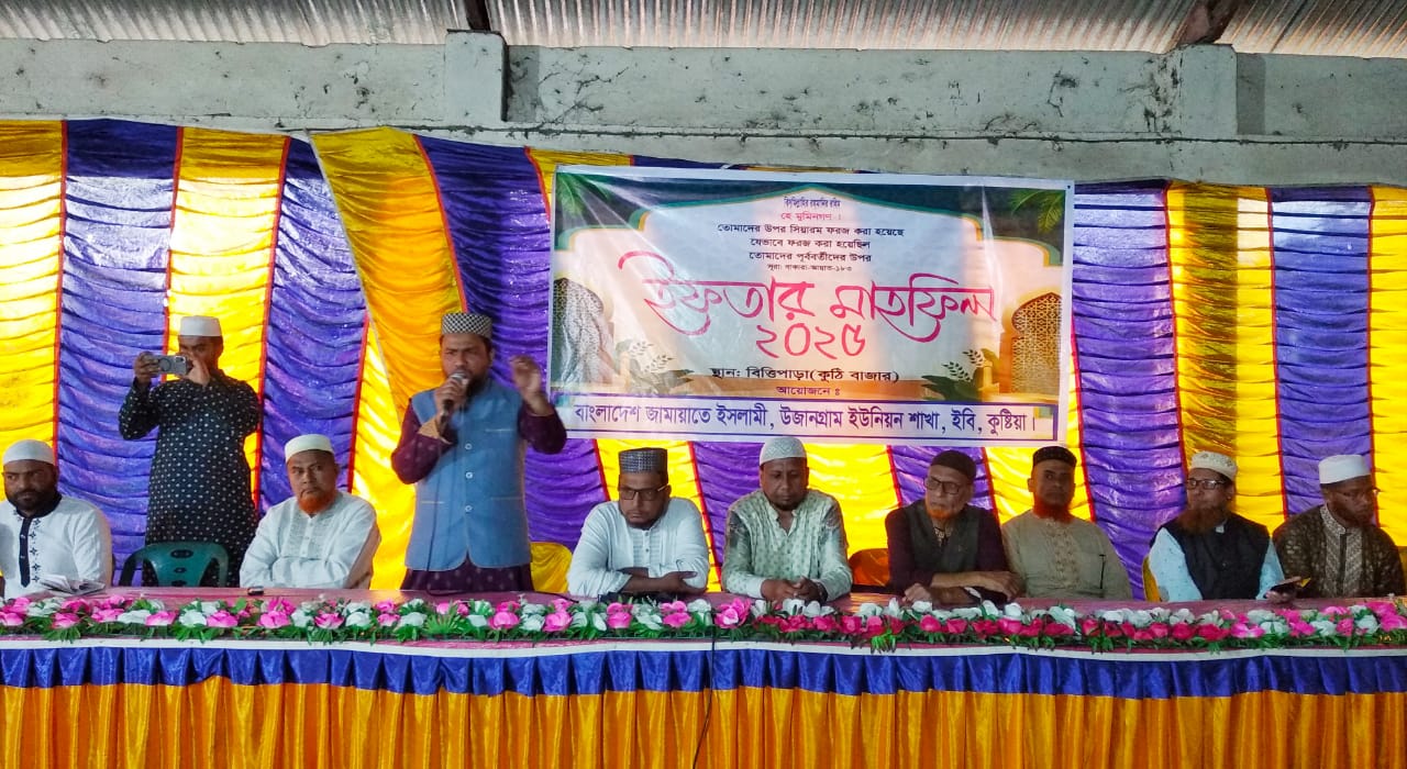 বাংলাদেশ জামায়াতে ইসলামী আয়োজনে কুষ্টিয়া ইবি থানাধীন উজানগ্রাম ইউনিয়নের উদ্যোগে বিত্তিপাড়া কুঠি বাজারে ইফতার মাহফিল অনুষ্ঠিত হয়েছে।