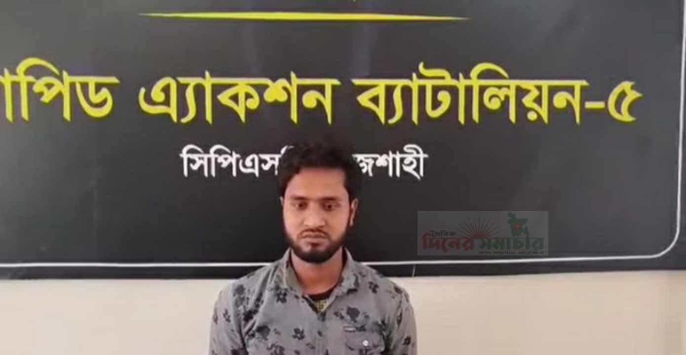 রাজশাহী দুর্গাপুর এক চাঞ্চল্যকর স্ত্রী আফরিন আক্তার হত্যা মামলার প্রধান আসামী শাহিনুর রহমান ু RAB-5 এর হাতে গ্রেফতার।