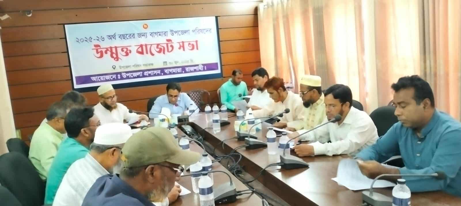 রাজশাহীর বাগমারা উপজেলা পরিষদের উম্মুক্ত বাজেট ঘোষনা করা হয়েছে। সোমবার (৩০ জুন) বিকেল তিনটায় উপজেলা পরিষদ হলরুমে উম্মুক্ত বাজেট সভা উপলক্ষে এক আলোচনা সভার আয়োজন করা হয়।আলোচনা সভায় ২০২৫-২০২৬ অর্থ বছরের জন্য ১৫ কোটি ২ লক্ষ ৫৫ হাজার ৫৯১ টাকার বাজেট ঘোষণা করা হয়েছে।উপজেলা নির্বাহী কর্মকর্তা মাহবুবুল ইসলামের সভাপতিত্বে উম্মুক্ত বাজেট সভায় বক্তব্য রাখেন, বীরমুক্তিযোদ্ধা সামসুল ইসলাম, ভবানীগঞ্জ মহিলা ডিগ্রী কলেজের উপাধ্যক্ষ আব্দুস সোবহান, উপজেলা জামায়াতের সেক্রেটারি অধ্যাপক অহিদুল ইসলাম,উপজেলা প্রকৌশলী খলিলুর রহমান,কাচারী কোয়ালীপাড়া ইউনিয়নের চেয়ারম্যান মোজাম্মেল হক, শুভডাঙ্গা ইউনিয়নের চেয়ারম্যান অধ্যাপক মোশারফ হোসেন, আউচপাড়া ইউনিয়নের চেয়ারম্যান শাফিকুল ইসলাম শাফি,গোয়ালকান্দি ইউনিয়নের ভারপ্রাপ্ত চেয়ারম্যান বকুল হোসেন, উপজেলা যুব উন্নয়ন কর্মকর্তা সালেক উদ্দীন, প্রাথমিক শিক্ষা অফিসার সাইফুল ইসলাম, মহিলা বিষয়ক কর্মকর্তা মিজানুর রহমান, কৃষি অফিসার আব্দুর রাজ্জাক, মৎস্য অফিসার আকতারুজ্জামান, পল্লী বিদ্যুতের এজিএম জাহিদুল ইসলাম, বাগমারা প্রেস ক্লাবের সভাপতি রাশেদুল হক ফিরোজ, সাধারন সম্পাদক হেলাল উদ্দীন, প্রথম আলোর বাগমারা প্রতিনিধি মামুনুর রশিদ মামুন, কালবেলা পত্রিকার বাগমারা প্রতিনিধি ইউসুফ আলী সরকার, সানশাইন পত্রিকার বাগমারা প্রতিনিধি আকবর আলী প্রমুখ। অনুষ্ঠানে আগামী অর্থ বছরের জন্য ১৫ কোটি ২ লক্ষ ৫৫ হাজার ৫৯১ টাকার উম্মুক্ত বাজেট ঘোষনা করা হয়।