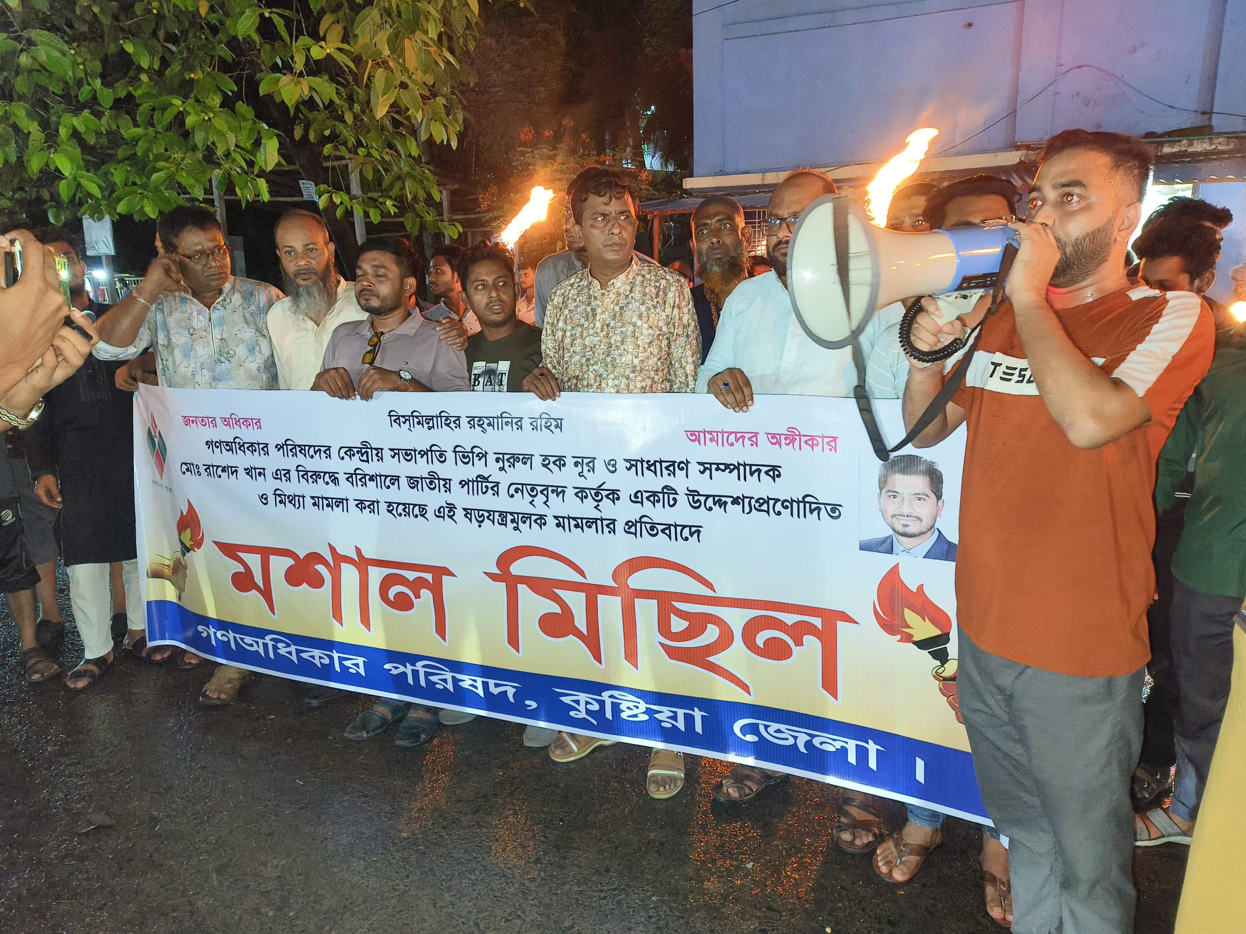 গণঅধিকারের সভাপতি ভিপি নূর ও রাশেদ খানের বিরুদ্ধে মিথ্যা মামলার প্রতিবাদে কুষ্টিয়ায় মশাল মিছিল