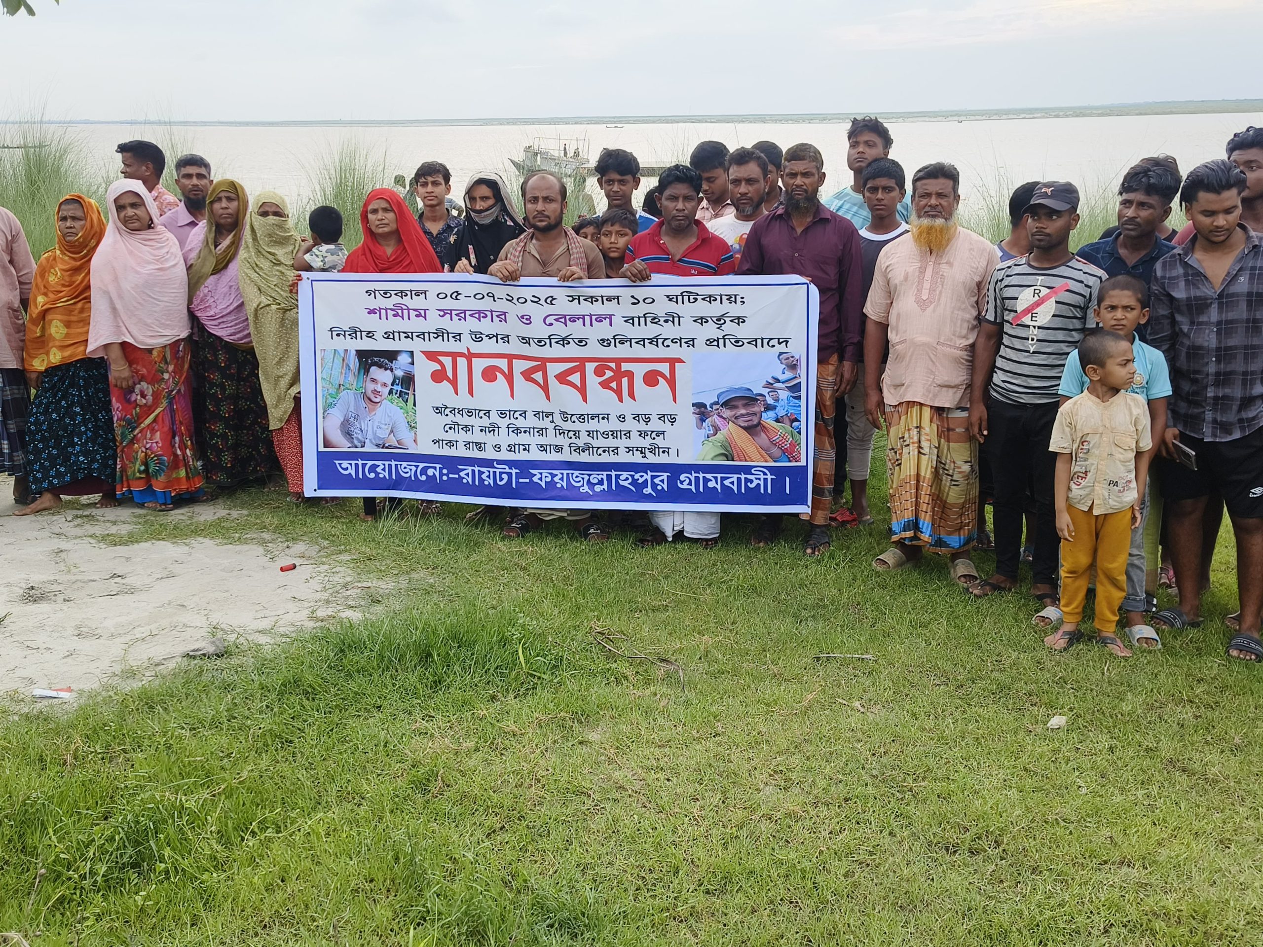 কুষ্টিয়ায় পদ্মা নদীতে গ্রামবাসির ওপর গুলিবর্ষণ : প্রতিবাদে মানববন্ধন