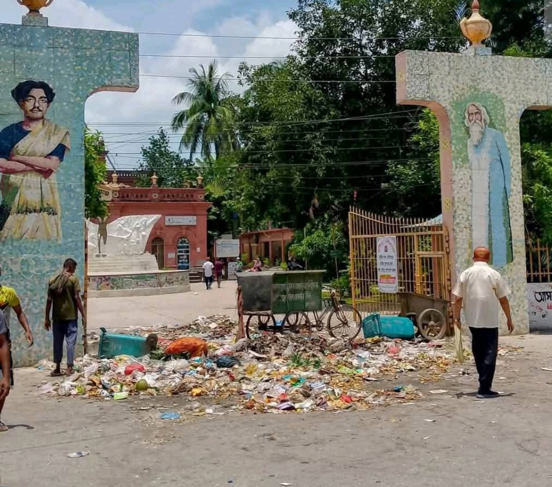 বেতন-বোনাস বৃদ্ধির দাবিতে কুষ্টিয়া পৌরসভার গেটে ময়লা-আবর্জনা ফেলে  অভিনব আন্দোলন