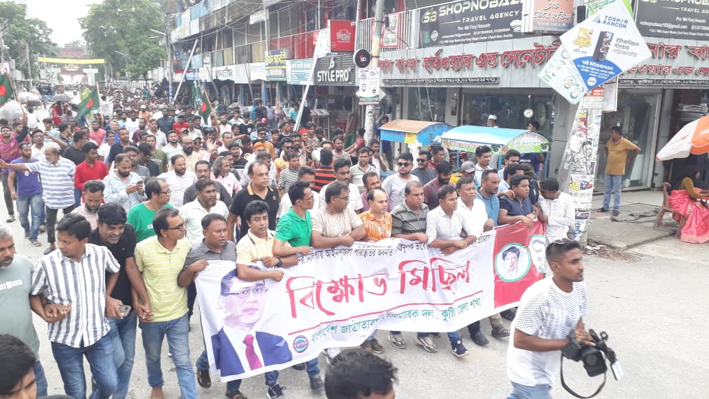 এরআগে খন্ড খন্ড মিছিল নিয়ে কুষ্টিয়া পৌরসভা বিজয় উল্লাসে জড়ো হন নেতাকর্মীরা। সেখান থেকে বিক্ষোভ মিছিলটি বের হয়ে শহরের প্রধান প্রধান সড়ক প্রদক্ষিণ করে বড়বাজার রেল গেটে গিয়ে শেষ। সেখানে সংক্ষপ্তি সমাবেশ শুরু হয়।