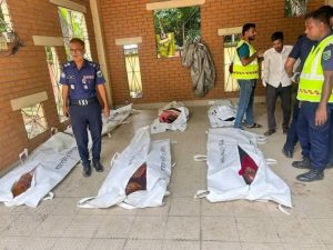 সড়ক দুর্ঘটনায় নিহত একই পরিবারের সাতজন সদস্যরা হলেন, জাহিদুল ইসলাম (৫৫) তার স্ত্রী সেলিনা খাতুন (৫০) বোন রওশন আরা আক্তার ইতি (৪৮) চাচাতো বোন আনোয়ারা খাতুন (৫৫) চাচাতো ভাবি আনোয়ারা খাতুন আনু (৫০) শাশুড়ি আনজুমান আরা বেগম (৬০) শ্যালিকা সীমা খাতুন (৩৫) এছাড়াও নিহত মাইক্রোবাসচালক শাহাবুদ্দিন (৪২) একই গ্রামের বাসিন্দা ছিলেন। নিহত জাহিদুল ইসলামের চাচাতো ভাই মানজারুল ইসলাম খোকন বলেন,আমার চাচাতো ভাইয়ের দুই ছেলে প্রবাসে থাকেন। দুইদিন আগে এক ছেলের স্ত্রীর অপারেশন হয়েছে। তিনি দেশে তার বাবার বাড়ি সিরাজগঞ্জে থাকেন। তাকে দেখতে যাওয়ার জন্য সকাল সাড়ে ৬টার দিকে একটি মাইক্রোবাস ভাড়া নিয়ে চাচাতো ভাই,ভাবিসহ পরিবারের ৭জন সিরাজগঞ্জ যাচ্ছিলেন। এ সময় পথিমধ্যে সড়ক দুর্ঘটনায় পরিবারের সাতজন ঘটনাস্থলেই মারা গেছেন। তাদের পরিবারে আর কেউ থাকলো না। নিহতদের মধ্যে জাহিদুলের স্ত্রী,বোন,শ্বাশুরি,শালিকাও রয়েছে। মর্মান্তিক এই সড়ক দুর্ঘটনায় পরিবারের সাতজনের মৃত্যুতে এলাকায় শোকের ছায়া নেমে এসেছে।