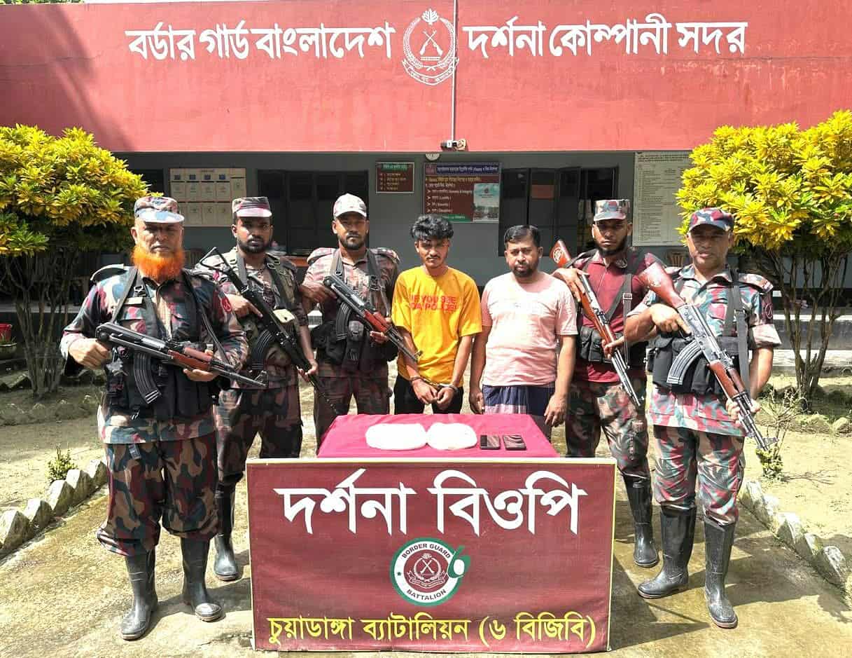 চুয়াডাঙ্গার দর্শনায় বিজিবির টহল দল চোরাচালান বিরোধী এক অভিযান চালিয়ে প্রায় ১১ কেজি ভারতীয় রুপাসহ দুই পাচারকারীকে আটক করেছে।