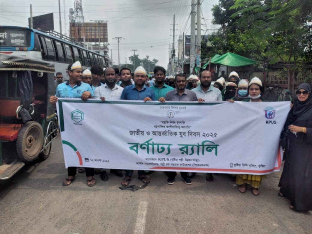জাতীয় ও আন্তর্জাতিক যুব দিবস উদযাপন করেছে কুষ্টিয়া পল্লী উন্নয়ন সংস্থা। দিবসটি উপলক্ষে সংস্থাটি গতকাল মঙ্গলবার (১২আগস্ট) সকাল ১০টার সময় কুষ্টিয়া শহরের ঝাউতলা মোড় থেকে একটি বর্ণাঢ্য র‍্যালি বের করে। পল্লী কর্ম সহায়ক ফাউন্ডেশনের সার্বিক সহযোগিতায় অনুষ্ঠিত র‍্যালিটি কুষ্টিয়া শহেরর প্রধান প্রধান সড়ক প্রদক্ষিণ শেষে কুষ্টিয়া জেলা প্রশাসকের কার্যালয়ের সামনে কালেক্টরেট চত্বরে সমাবেশে মিলিত হয়। এখানে বক্তব্য রাখেন, কুষ্টিয়া পল্লী উন্নয়ন সংস্থার রেইজ প্রকল্পের সমন্বয়কারী এস এম তাহাজ্জুদ হোসেন বলেন, বর্তমানে বাংলাদেশে এক তৃতীয়াংশ জনশক্তি হচ্ছে তরুন প্রজন্ম,এই তরুন প্রজন্মকে যদি দক্ষ মানব সম্পদ হিসেবে আগামীর জন্য প্রস্তুত করা না যায় তাহলে বাংলাদেশের উন্নয়ন মুখ থুবড়ে পড়বে। সূতরাং যুব সমাজকে এখনই জাতি গঠনে এগিয়ে আসতে হবে। বাংলাদেশকে বিশ্বের বুকে উন্নত দেশ হিসেবে পরিচিত করতে হলে এখনই যুব সমাজকে নিয়ে সরকারের বিভিন্ন উচ্চ মহলে সঠিক পরিকল্পনা তৈরি করে বাস্তবায়নেরকৌশল নির্ধারন করতে হবে।