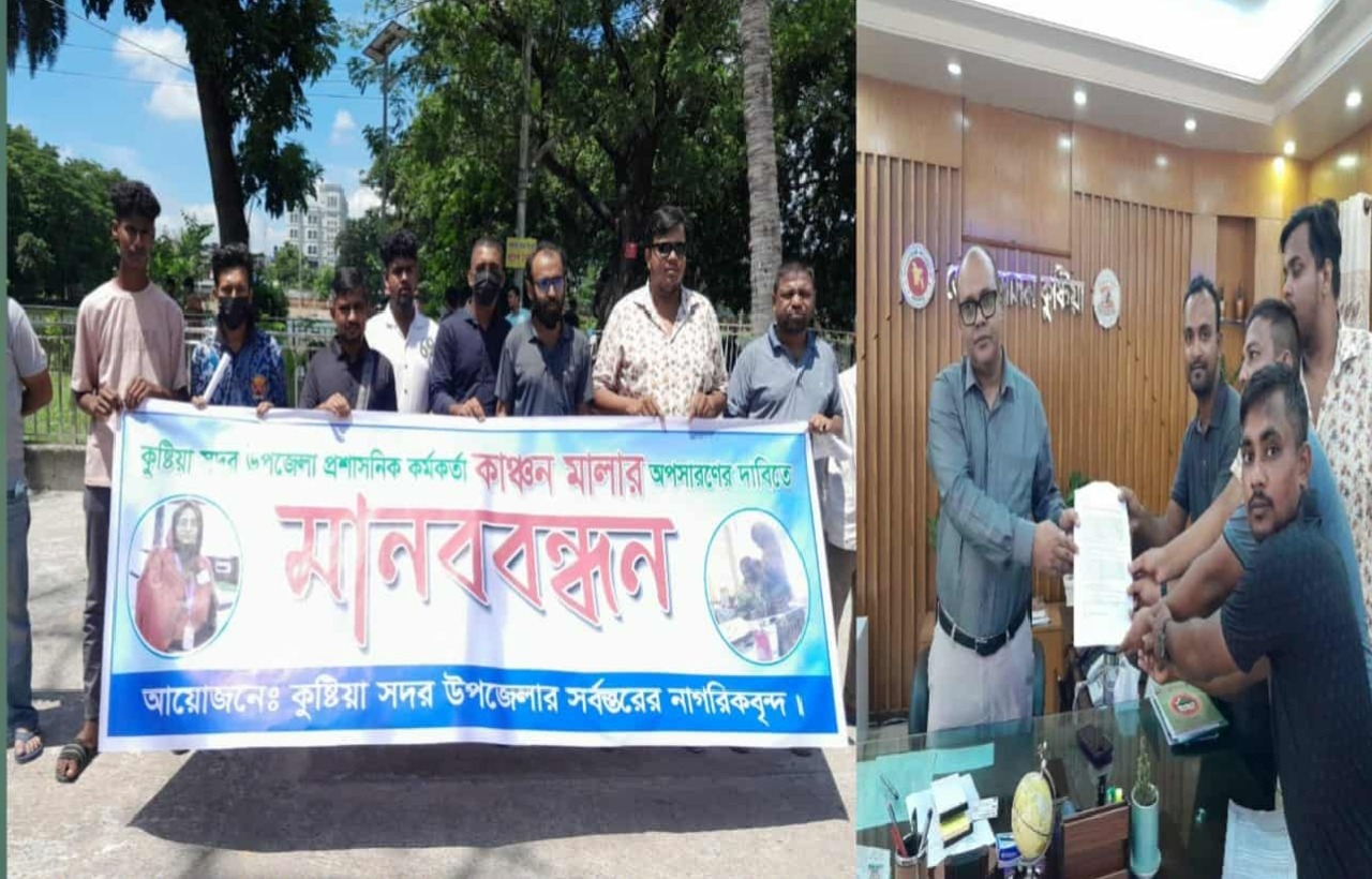 কুষ্টিয়ায় প্রশাসনিক কর্মকর্তার বিরুদ্ধে মানববন্ধন ও স্মারকলিপি