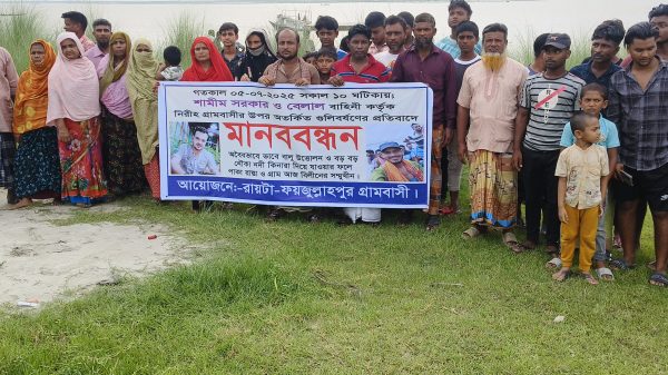 কুষ্টিয়ায় পদ্মা নদীতে গ্রামবাসির ওপর গুলিবর্ষণ : প্রতিবাদে মানববন্ধন