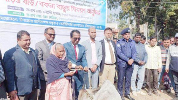 নিয়ামতপুরে ক্ষুদ্র নৃগোষ্ঠীর জীবনমান উন্নয়নের লক্ষ্যে ষাড় ও বকনা বাছুর বিতরণ