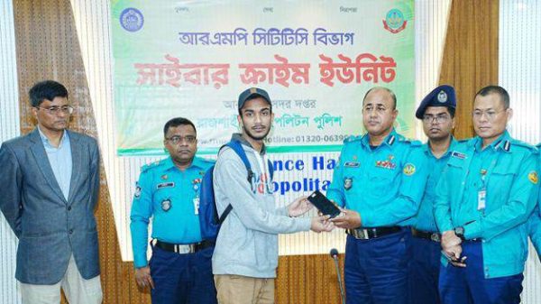 আরএমপির সাইবার ইউনিটের সহায়তায় উদ্ধার ১১২ মোবাইল হস্তান্তর