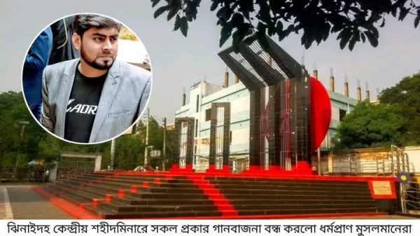 ঝিনাইদহ কেন্দ্রীয় শহীদমিনারে সকল প্রকার গানবাজনা বন্ধ করলো ধর্মপ্রাণ মুসলমানেরা