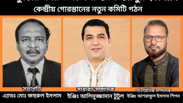 নিজস্ব প্রতিবেদক : কুষ্টিয়া জেলার সদর উপজেলার ঐতিহ্যবাহী হাটশ হরিপুর ইউনিয়ন কেন্দ্রীয় গোরস্তানের কমিটি গঠন করা হয়েছে। উক্ত কমিটির সভাপতি বিশিষ্ট আইনজীবি এ্যাডঃ মোঃ জহুরুল ইসলাম, সাধারণ সম্পাদক ইঞ্জিঃ আলিমুজ্জামান