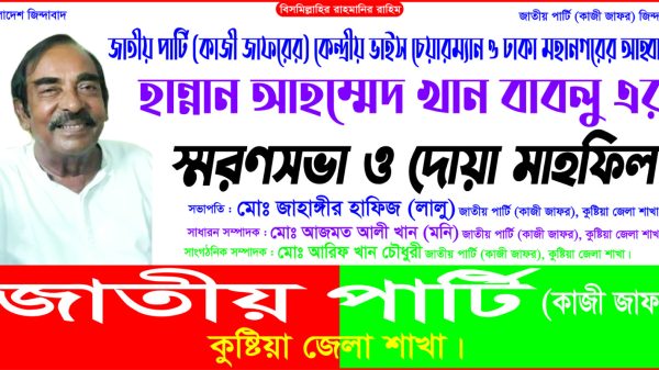 জাতীয় পার্টি (কাজী জাফর) দলের কেন্দ্রীয় ভাইস চেয়ারম্যান বাবলুর স্মরনে কুষ্টিয়ায় স্মরন সভা