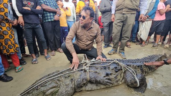 কুষ্টিয়ার পদ্মা নদীতে জেলের জালে ধরা পড়লো কুমির