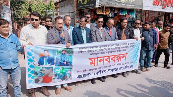 জনবাণীর সম্পাদকসহ ৪ সাংবাদিকের ওপর হামলা, প্রতিবাদে কুষ্টিয়ায় মানববন্ধন