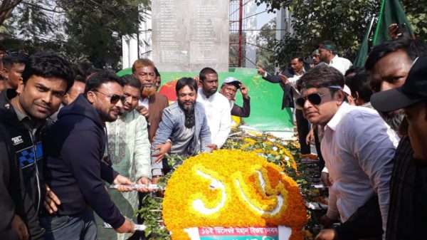 নিজস্ব প্রতিনিধিঃ যথাযথ মর্যাদায় মহান বিজয় দিবস উদযাপন করেছে কুষ্টিয়া শহর যুবদল। সোমবার (১৬ডিসেম্বর) সূর্য উদয়ের সঙ্গে সঙ্গে কুষ্টিয়া কালেক্টরেট চত্বরে মুক্তিযুদ্ধের স্মারক অঙ্গীকারে কুষ্টিয়া জেলা বিএনপির আহবায়ক কমিটির সাথে