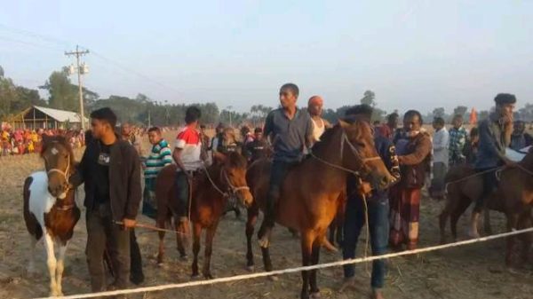 বাবুল রহমান রবিন, গাইবান্ধা জেলা প্রতিনিধি: গাইবান্ধার সাদুল্লাপুরে আবহমান গ্রামবাংলার ঐতিহ্যবাহী ঘোড়দৌড় দেখতে ঢল নেমেছে হাজারো মানুষের। এ সময় মাতোয়ারা হয়ে ওঠে তারা। শিশু-কিশোরেরাও ছিল উচ্ছ্বসিত। শনিবার (২৮ ডিসেম্বর) বিকেলে