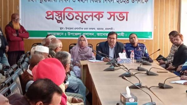সোহেল রানা,ভ্রাম্যমান,প্রতিনিধি: রাজশাহীর তানোরে ১৪ ডিসেম্বর শহীদ বুদ্ধিজীবী দিবস ও ১৬ ডিসেম্বর মহান বিজয় দিবস ২০২৪ উদযাপন উপলক্ষে প্রস্তুতিমূলক সভা অনুষ্ঠিত হয়েছে।উপজেলা প্রশাসনের আয়োজনে বৃহস্পতিবার (৫ ডিসেম্বর)বেলা ১১ টায় উপজেলা