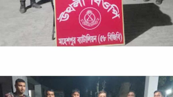 জীবননগরে বিজিবি ৯৮ বোতল মদ ও ১৩ কেজি গাঁজা উদ্ধার