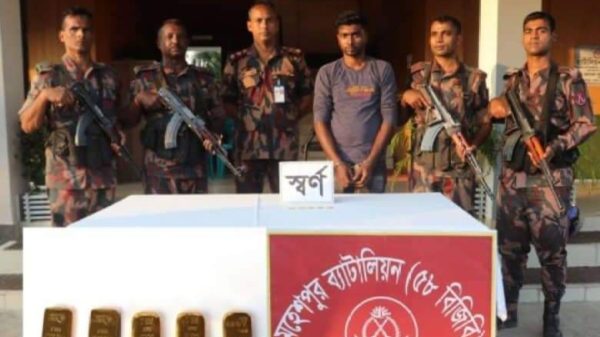 সেলিম রেজা,মহেশপুর(ঝিনাইদহ)প্রতিনিধিঃ ঝিনাইদহের মহেশপুরে ৪১ লাখ ২২ হাজার টাকা মূল্যের ৫টি স্বর্ণেরবারসহ এক স্বর্ণ চোরাকারবারি যুবক কে আটক করেছে ৫৮ বিজিবি । আজ বিকেলে উপজেলার শ্যামকুড় ইউপির গুড়দাহ বাজার থেকে
