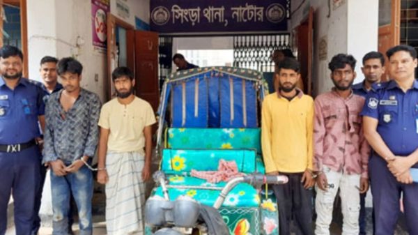 মারুফ আহমেদ,নাটোর: নাটোরের সিংড়ায় সাইদুল ইসলাম (২২) নামে এক অটোরিক্সা চালকের গলায় গামছা পেঁচিয়ে ও হাত বেঁধে অটোরিক্সা ছিনতাইয়ের ঘটনা ঘটেছে। পুলিশ এ ঘটনায় জড়িত ৪ জনকে আটক ও অটোরিক্সা