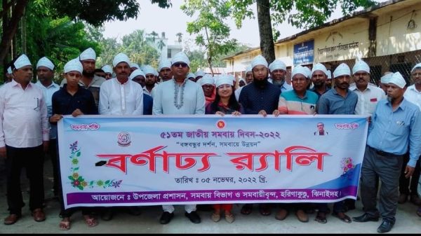 হরিনাকুণ্ডু (ঝিনাইদহ)থেকে রাব্বুল হুসাইনঃ বঙ্গবন্ধু দর্শন,সমবায় উন্নয়ন’এই প্রতিপাদ্যকে সামনে রেখে ঝিনাইদহের হরিনাকুণ্ডুতে ৫১ তম জাতীয় সমবায় দিবস উদযাপন উপলক্ষে আনুষ্ঠানিকভাবে জাতীয় ও সমবায় পতাকা উত্তোলন,র্যালি ও আলোচনা সভা অনুষ্ঠিত হয়েছে।