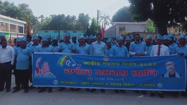মেহেরপুর প্রতিনিধিঃ মেহেরপুরে জাতীয় সমবায় দিবস পালিত হয়েছে। “বঙ্গবন্ধুর দর্শন,সমবায়ে উন্নয়ন” এ প্রতিপাদ্যকে সামনে রেখে দিবসটি উপলক্ষে নানা কর্মসূচি পালন করা হয়৷ কর্মসূচীর মধ্যে রয়েছে বর্ণাঢ্য শোভাযাত্রা ও আলােচনা সভা