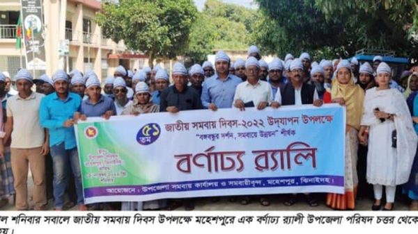 সেলিম রেজা,মহেশপুর(ঝিনাইদহ)প্রতিনিধিঃ ঝিনাইদহের মহেশপুর উপজেলা সমবায় কার্যালয় ও সমবায়ীবৃন্দের আয়োজনে ৫১তম জাতীয় সমবায় দিবস পালিত হয়েছে। এ উপলক্ষে শনিবার সকালে উপজেলা পরিষদ চত্বরে আলোচনা সভা, র্যালী, পতাকা উত্তোলন ও শ্রেষ্ঠ