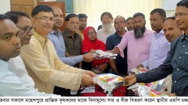 সেলিম রেজা,মহেশপুর(ঝিনাইদহ)প্রতিনিধিঃ- ঝিনাইদহের মহেশপুরে মৌসুমে গ্রীষ্মকালীন পেঁয়াজ উৎপাদন বৃদ্ধির লক্ষ্যে প্রণোদনা কর্মসূচির আওতায় সরকারের বিনামূল্যে কৃষকদের মাঝে সার ও বীজ বিতরণ করা হয়েছে। বৃহস্পতিবার সকালে উপজেলা কৃষি অফিস চত্বরে কৃষকদের