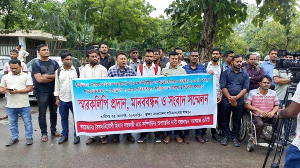 নিজস্ব প্রতিবেদক : বৈষম্যবিরোধী হিসাব সহকারী কাম-কম্পিউটার অপারেটররা তিনদফা দাবিতে মানববন্ধন করেছে। রবিবার সকালে বাংলাদেশ সচিবালয়ের সামনে মানববন্ধন ও সংবাদ সম্মেলন শেষে প্রধান উপদেষ্টা বৈষম্যবিরোধী ইউনিয়ন হিসাব সহকারী কাম-কম্পিউটার অপারেটরের
