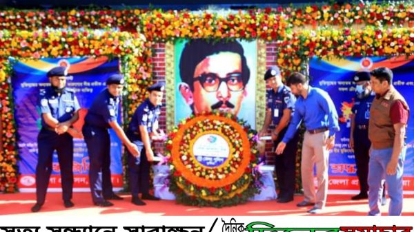 সমাচার ডেস্ক অনলাইনঃ শুক্রবার (৫ আগস্ট) সকাল সাড়ে ৮ টায় পুলিশ সুপার কুষ্টিয়া মোঃ খাইরুল আলমের নের্তৃত্বে জেলা পুলিশ কুষ্টিয়া স্বাধীনতার মহান স্থপতি সর্বকালের সর্বশ্রেষ্ঠ বাঙালি জাতির পিতা বঙ্গবন্ধু শেখ
