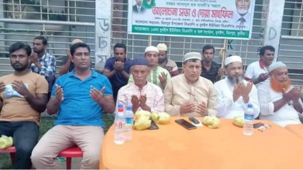 মেজবা উদ্দিন পলাশ, কুষ্টিয়া : কুষ্টিয়া-২ (মিরপুর-ভেড়ামারা) আসনের সাবেক সংসদ সদস্য, জেলা বিএনপি’র সাবেক সভাপতি ও বিএনপি জাতীয় নির্বাহী কমিটির সদস্য বীর মুক্তিযোদ্ধা আলহাজ্ব অধ্যাপক শহীদুল ইসলামের রোগমুক্তি কামনা ও