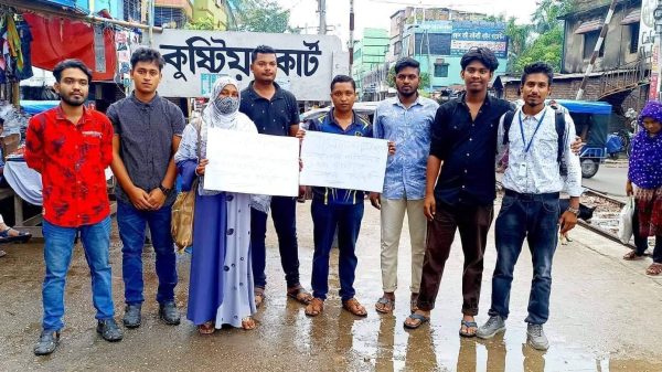 কুষ্টিয়া, ২৪-৭-২০২২ ইং : সমাচার ডেস্ক অনলাইনঃ রেলওয়ের অব্যবস্থাপনার পরিবর্তনে মহিউদ্দিন রনির উত্থাপিত ৬ দফা বাস্তবায়ন ও রেলওয়ের সেবার মান বৃদ্ধির দাবিতে অবস্থান কর্মসূচি পালন করেছে কুষ্টিয়ার একাধিক সামাজিক সংগঠন।