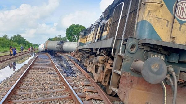 সমাচার ডেস্ক অনলাইনঃ কুষ্টিয়ায় তেলবাহী ট্রেন লাইনচ্যুত; ওয়াগন ফেটে পড়ে গেছে ৪২টন ফার্নেস অয়েল হালসায় তেলবাহী ট্রেনের ইঞ্জিন ও তিনটি বগি লাইনচ্যুত হয়ে গেছে। শনিবার (২৩ জুলাই) সকাল সাড়ে ৭টার