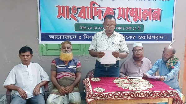 সমাচার ডেস্ক অনলাইনঃ কুষ্টিয়া পৌর এলাকার জুগিয়া মাদারশাহ্ এলাকায় মিঞাজান প্রামাণিকের সম্পত্তি ভূমিদস্যু আতিয়ার রহমান গংদের হাত থেকে রক্ষা করতে সাংবাদিক সম্মেলন করেছে তার ওয়ারিশবৃন্দ। ২৩ মে দুপুরে এই সাংবাদিক