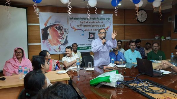 সমাচার ডেস্ক অনলাইনঃ বাংলা কাব্য জগতের কিংবদন্তি বিদ্রোহী কবি কাজী নজরুল ইসলামের ১২৩ তম জন্মজয়ন্তী উপলক্ষ্যে কুষ্টিয়া ফিল্ম সোসাইটির উদ্যোগে আজ ২৫ শে মে, ২০২২ ইং কুষ্টিয়া শহরের খেয়া রেস্তোরাঁয়