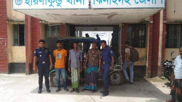 হরিনাকুণ্ডু (ঝিনাইদহ) থেকে রাব্বুল হুসাইন ঝিনাইদহের হরিনাকুণ্ডুতে ইজিবাইক চোর চক্রের তিন সদস্যকে গ্রেপ্তার করেছে হরিনাকুণ্ডু থানা পুলিশ । রবিবার সকালে সাংবাদিকদের এই তথ্য নিশ্চিত করেছেন হরিনাকুণ্ডু থানার অফিসার ইনচার্জ (ওসি)