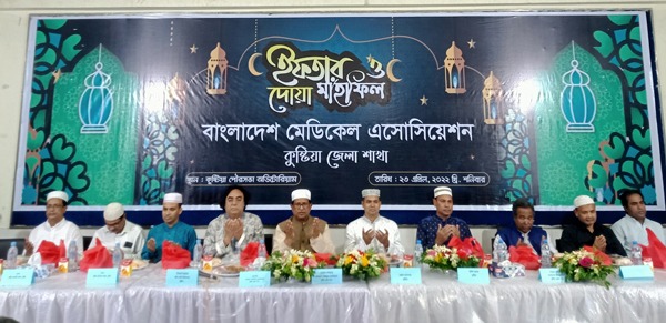 সমাচার ডেস্ক অনলাইনঃ বাংলাদেশ মেডিকেল এ্যাসোসিয়েশন কুষ্টিয়া জেলা শাখার আয়োজনে ইফতার ও দোয়া মাহফিল অনুষ্ঠিত হয়েছে। শনিবার পৌর অডিটোরিয়ামে ইফতার মাহফিলটি অনুষ্ঠিত হয়। বিএএমএ কুষ্টিয়ার সভাপতি ও মেডিকেল কলেজের সাবেক